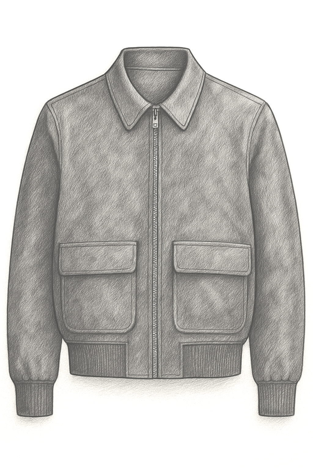 Blouson with a boxy cut, pointed collar, and front zip closure. Designed with ribbed cuffs and hem for structure, featured with two large flap pockets for a utilitarian touch and two inner pockets.