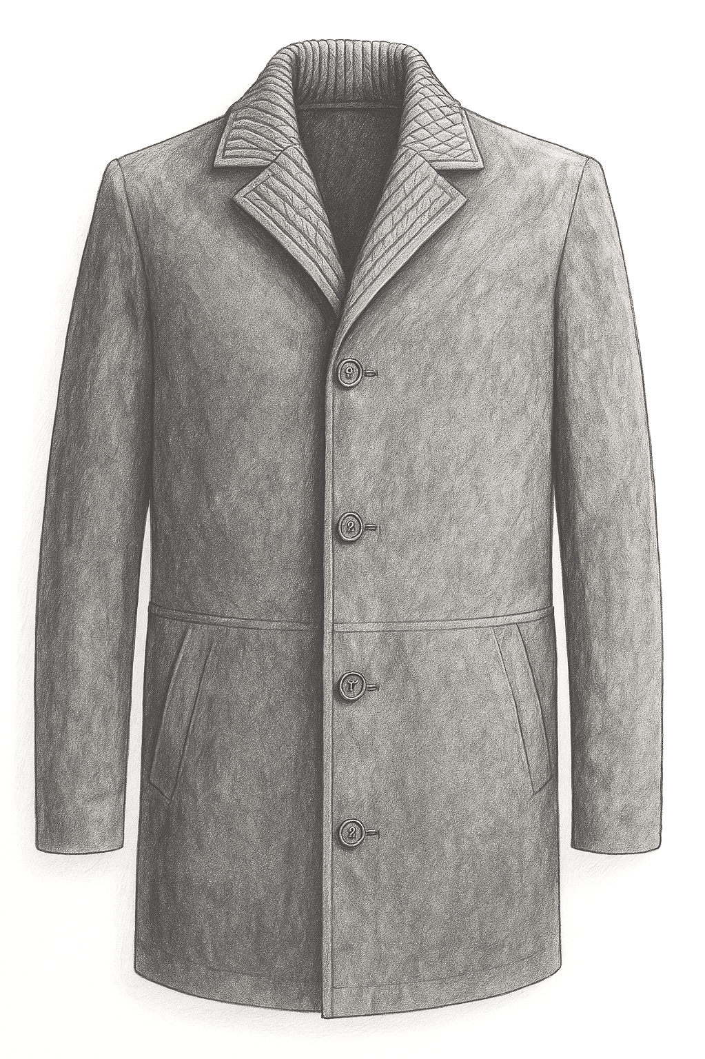 Tailored overcoat with a straight silhouette and button-front closure. Defined by a cashmere quilted stand-insert collar and lapels, paired with slanted welt pockets for a refined yet functional finish. It comes with cashmere lining and 2 inner pockets.